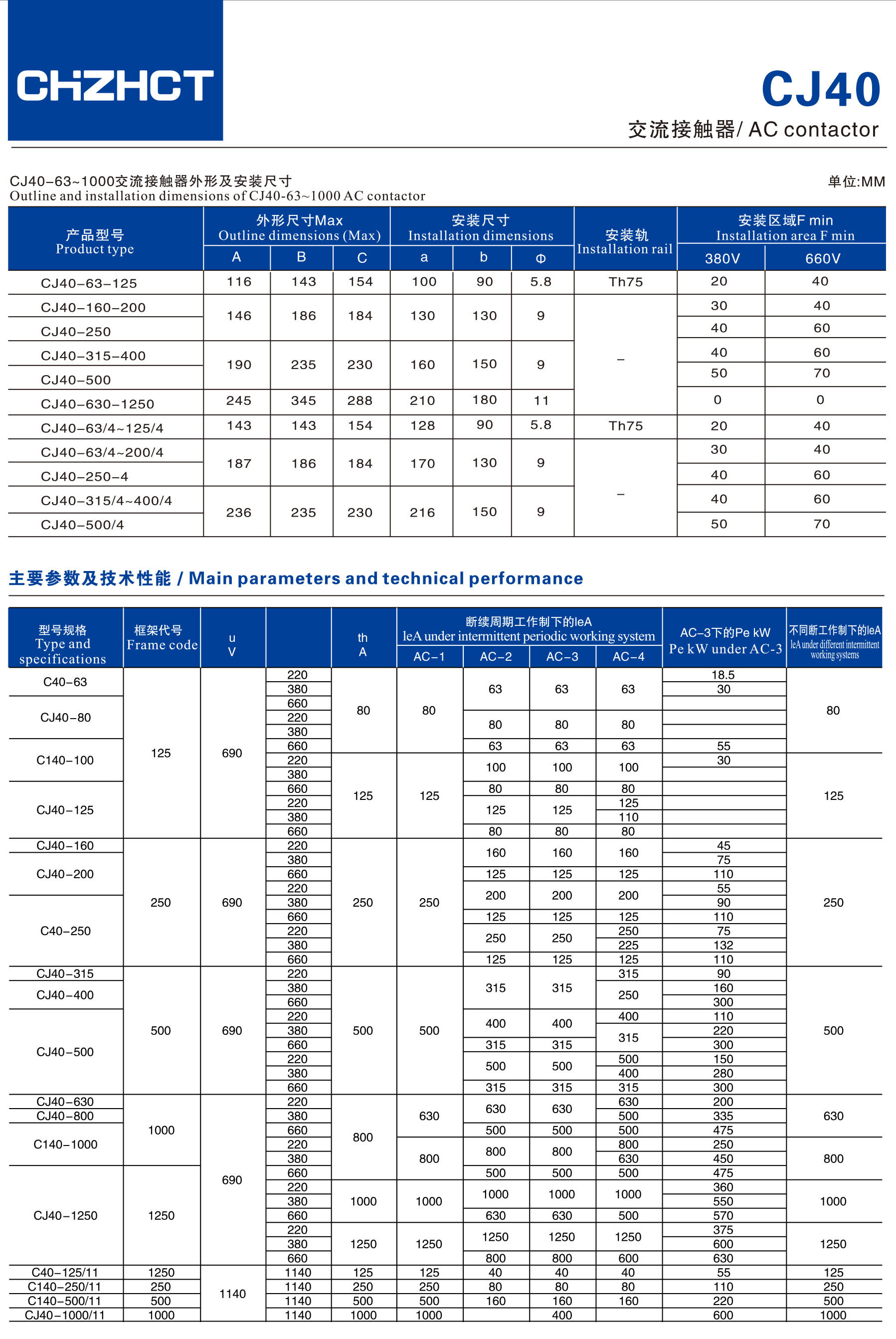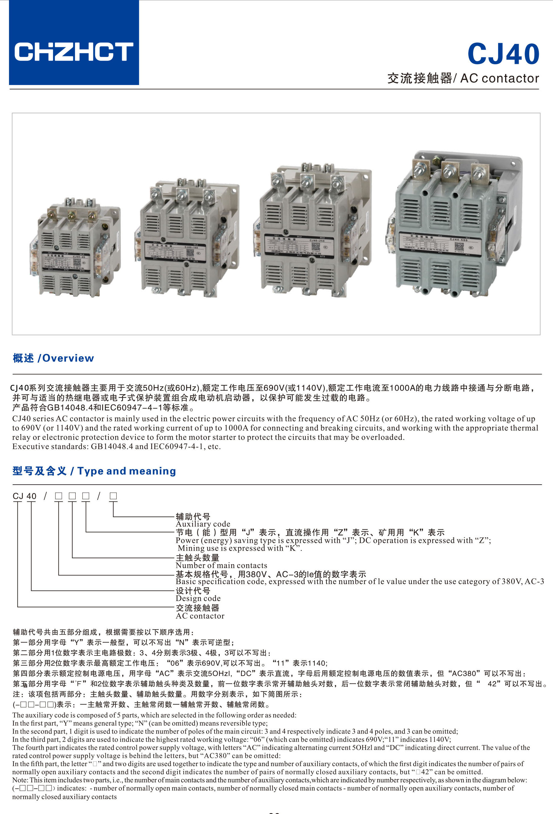 CJ40交流接触器_传统交流接触器_接触器_工业控制与保护_产品中心_huatihui电气股份有限公司