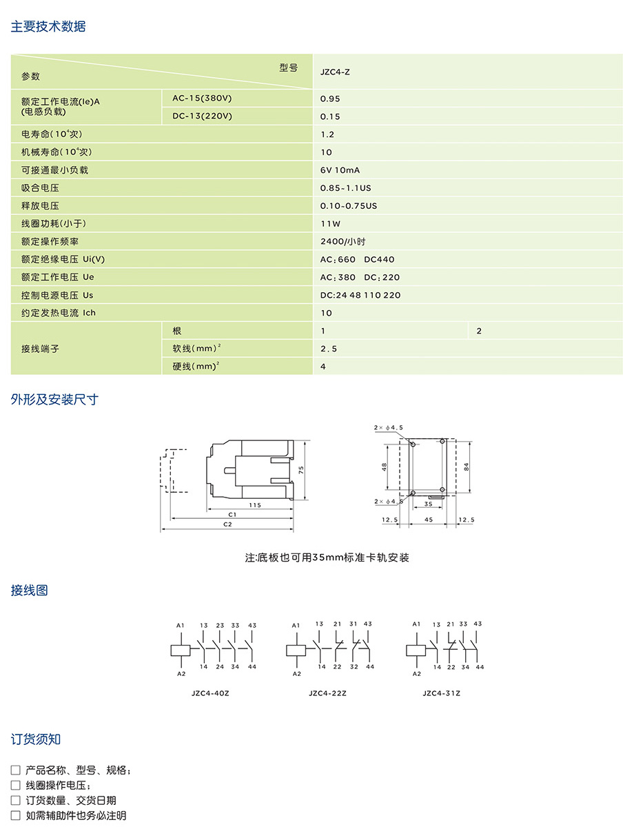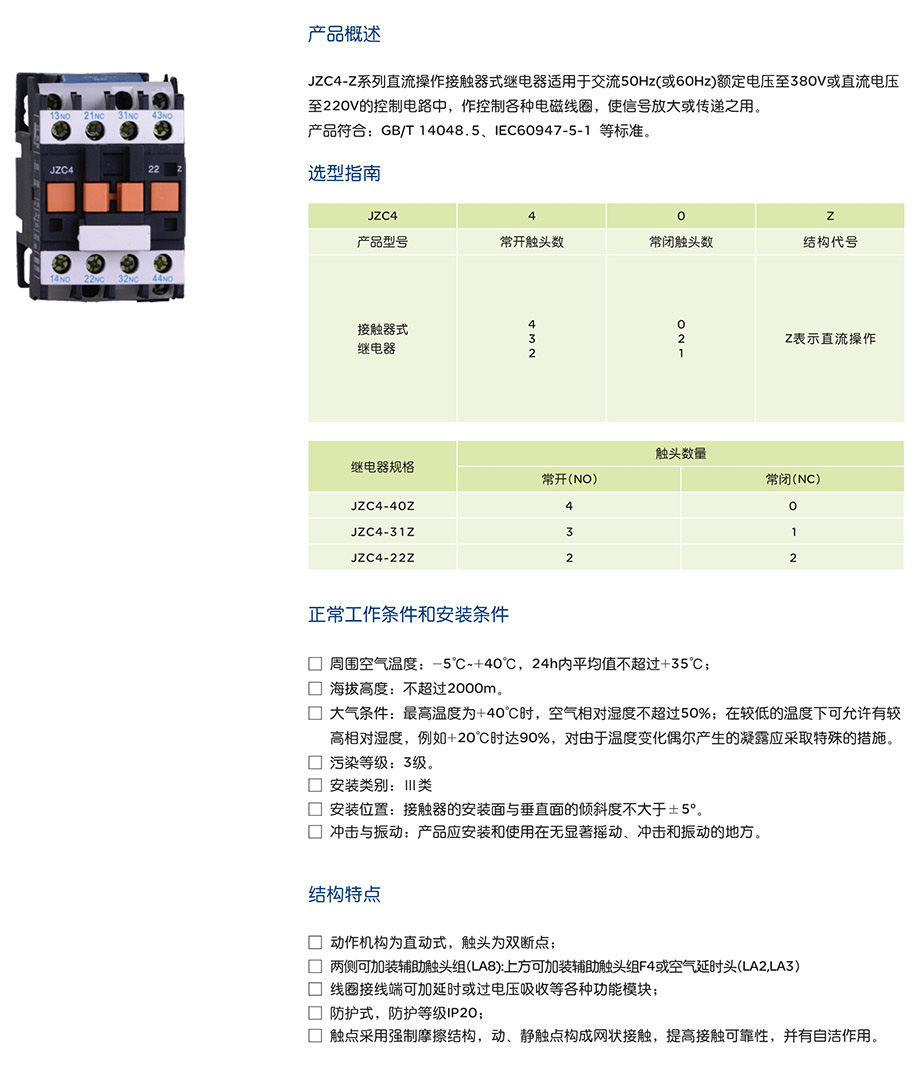 JZC4-Z系列直流继电器产品说明书