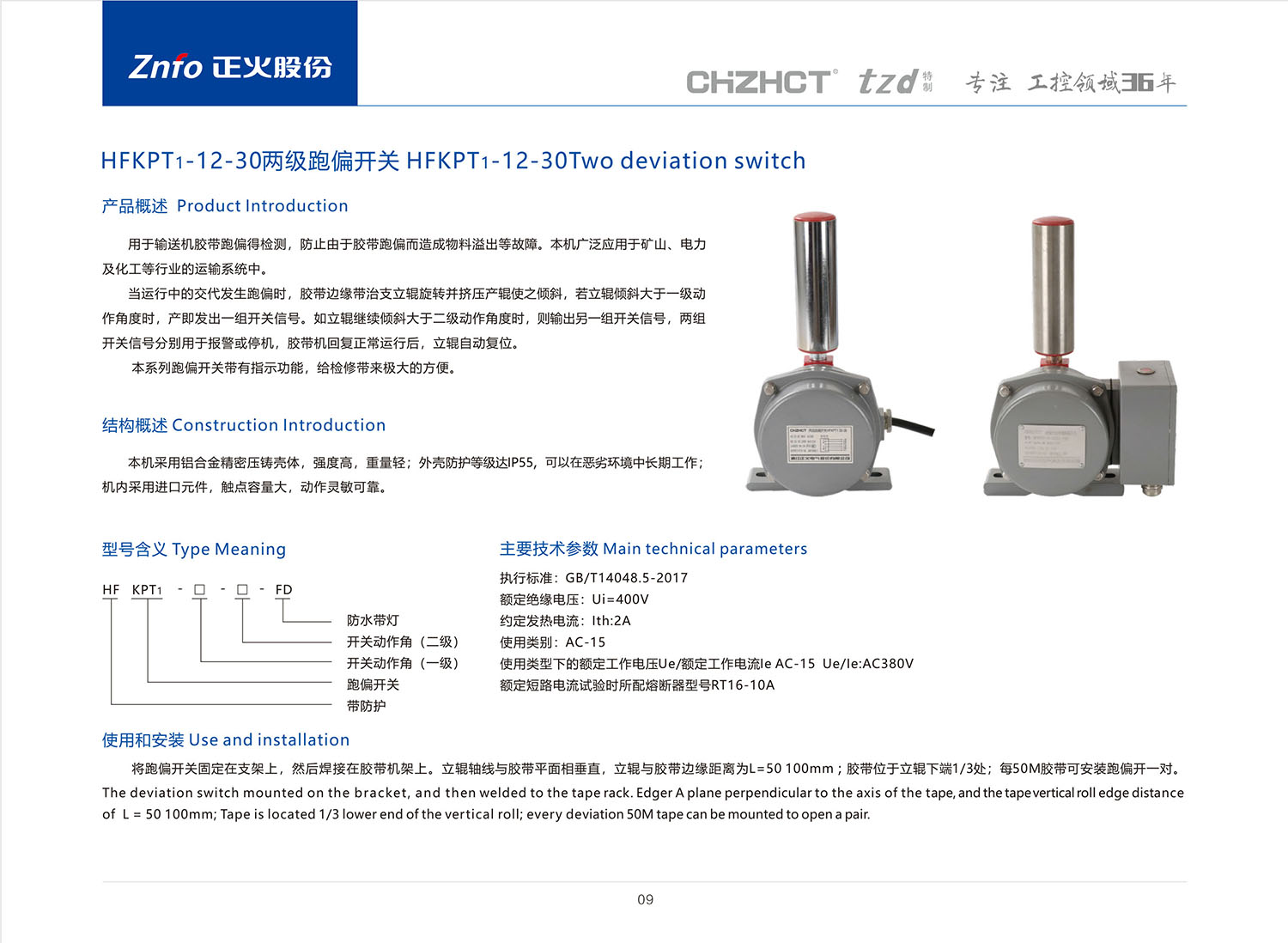 HFKPT1-12-30两级跑偏开关 _跑偏开关_行程/微动/跑偏/拉绳/超速_工业控制与保护_产品中心_huatihui电气股份有限公司