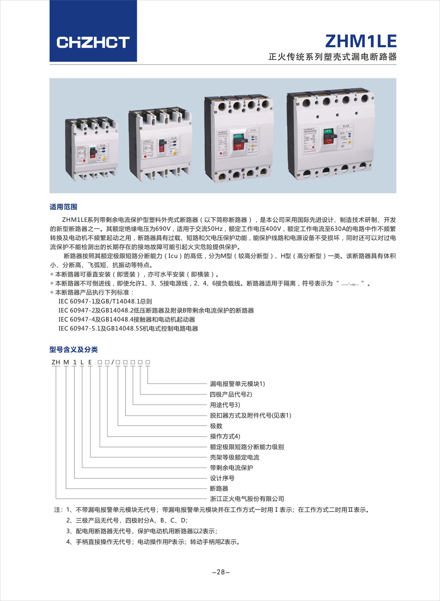 ZHM1LE 塑壳式漏电断路器_塑壳漏电断路器_配电电器_产品中心_huatihui电气股份有限公司