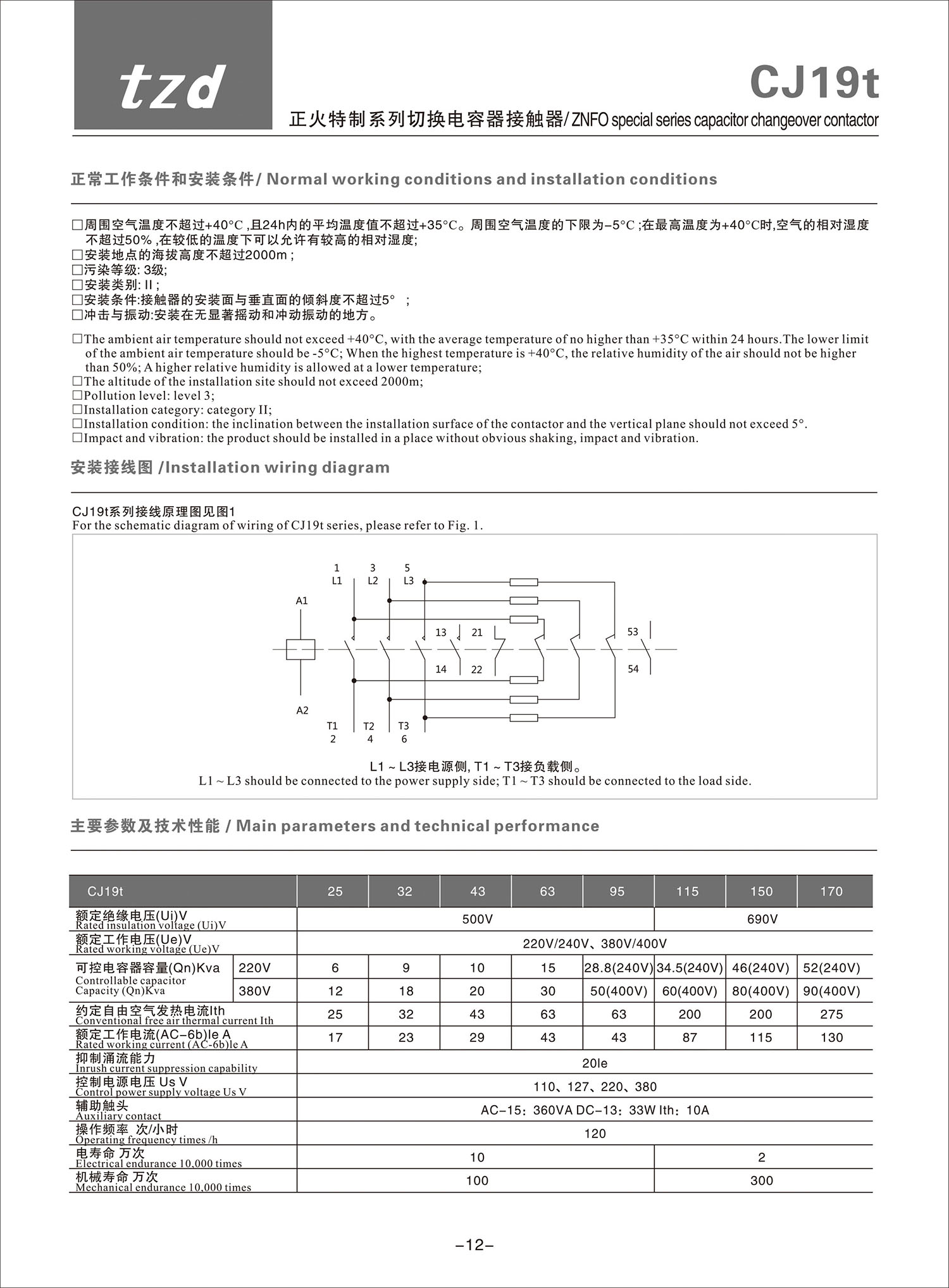 CJ19t huatihui特制系列切换电容器接触器产品说明书