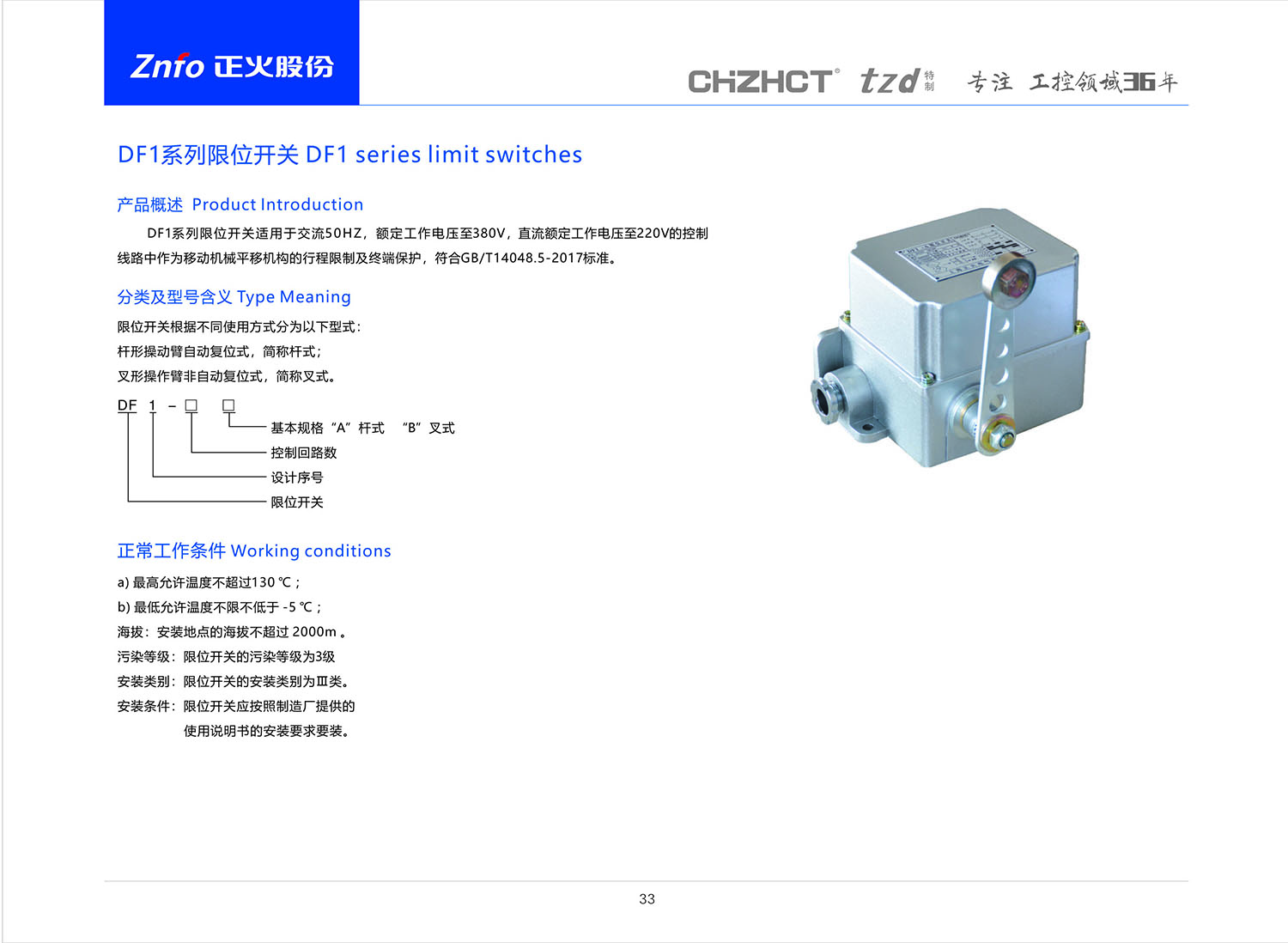 DF1系列限位开关_行程/限位开关_行程/微动/跑偏/拉绳/超速_工业控制与保护_产品中心_huatihui电气股份有限公司