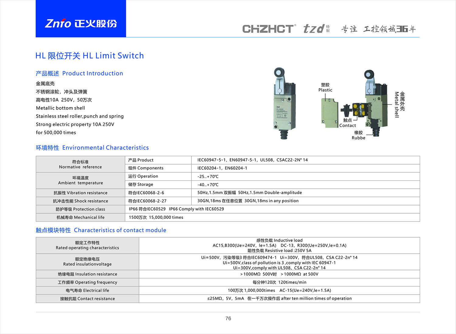 HL 限位开关_行程/限位开关_行程/微动/跑偏/拉绳/超速_工业控制与保护_产品中心_huatihui电气股份有限公司