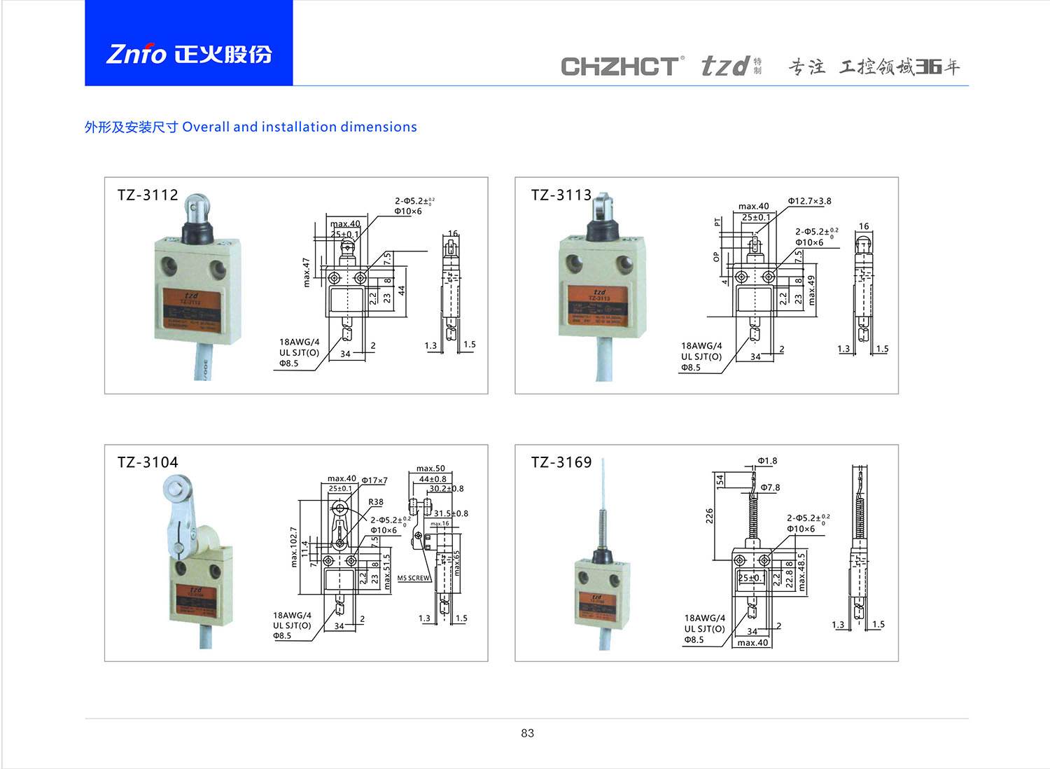 TZ-3 防水限位开关_行程/限位开关_行程/微动/跑偏/拉绳/超速_工业控制与保护_产品中心_huatihui电气股份有限公司