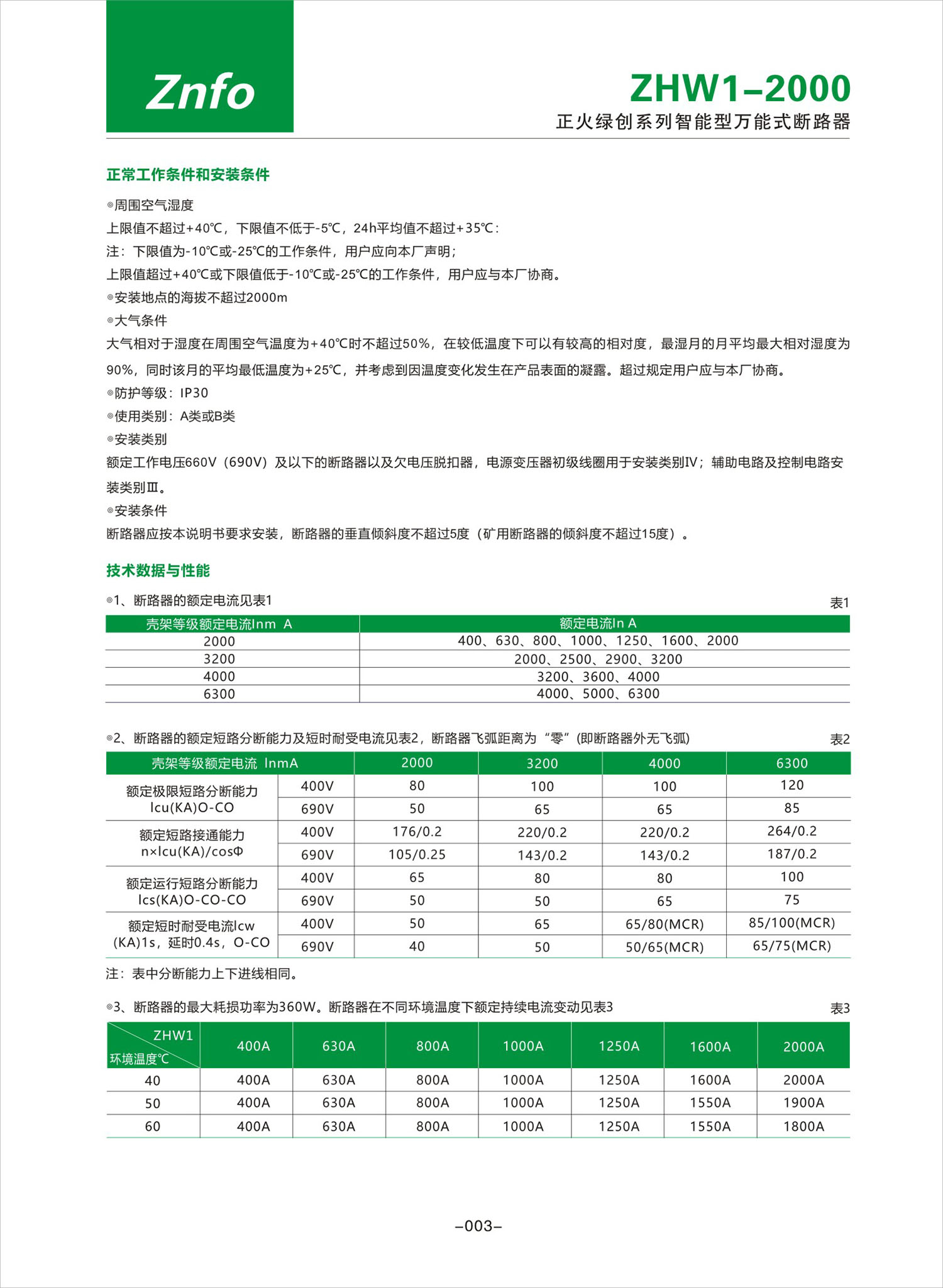 ZHW1-2000系列智能型万能式断路器产品说明书